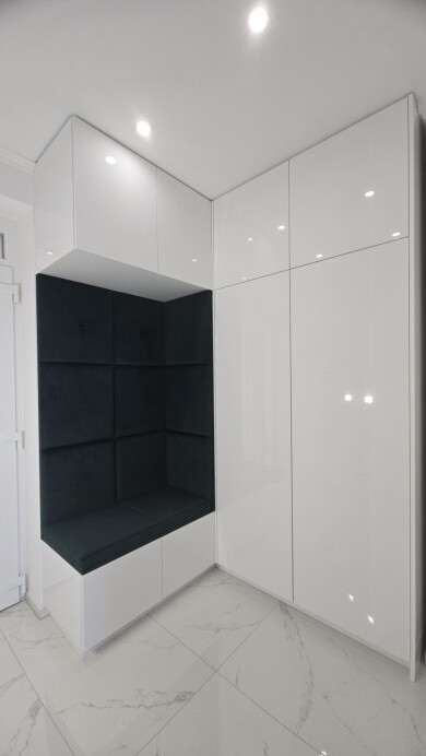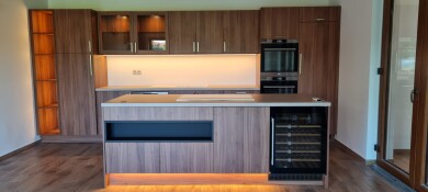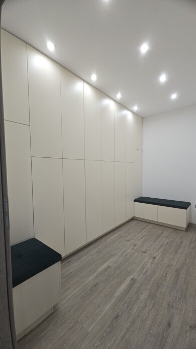 Minden bútor a megrendelő igényeihez és a tér sajátosságaihoz igazodva készült, hogy a funkcionalitás és az esztétikum harmonikus egységet alkosson.